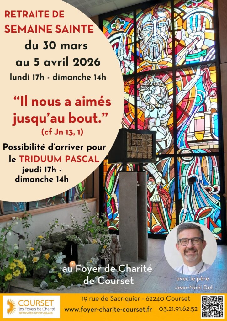 Et pour clore ce grand temps liturgique du Carême, sommet de notre vie chrétienne, la Semaine sainte vous accueille au sein du Foyer ! Si vous avez des difficultés à venir la semaine entière, vous pouvez nous rejoindre pour le Triduum pascal… Tellement grand le mystère de la Foi, de l’Amour d’un Dieu qui nous aime jusqu’à mourir pour nous !